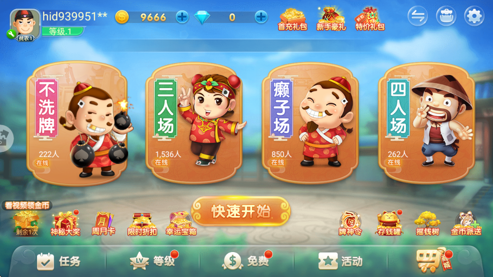 各种级别任务帮你建立打倒地主的信心,每次完成任务都有相应任务奖励,还有特殊任务等你去挑战,奖励更丰厚。