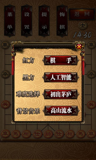 2、难易度自由调节。在QQ、联众象棋上被巨巨虐了怎么办,没事,在我们这把难度调到最低,把电脑虐个爽出口气,再慢慢加难度锻炼自己的棋力,回去找巨巨报仇!