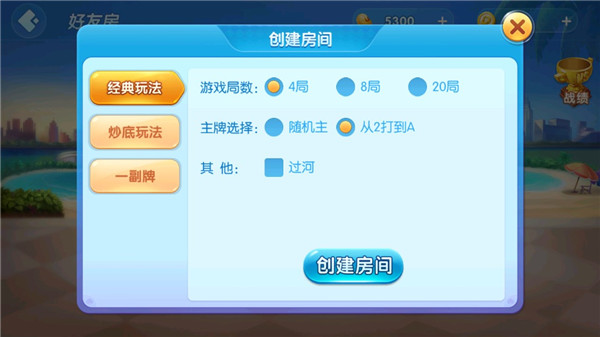 5、选择好游戏模式、局数等就可以创建房间了;