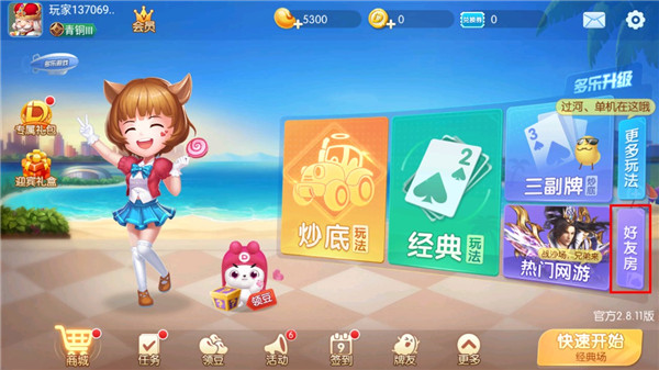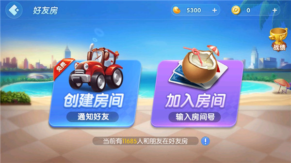 2、然后点击右边的好友房;