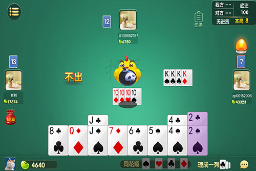 那么,为了有效的防止这种状况的发生,我们在上贡的时候,就应该挑选自家有比较多相邻同花的那一张最大牌作为上贡牌型交出。如果说玩家的手牌中没有如此的牌型,那就将这个范围再扩大一下。自家相邻同花的多了,对手那边自然也就少了,这样上贡上去的牌型,回贡方形成同花的几率就会降低很多,保证了己方的安全。