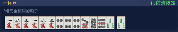 场风和自风刻子役我就不说了。咱们来说一些别的比较实用的,首先是一杯口,112233的牌型就可以,类似扑克里的连对,不过注意是门前清限定的,要靠自己摸。