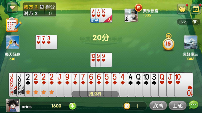 欢乐升级官方正版是一款由腾讯推出的休闲纸牌游戏。其在保留传统升级玩法的基础上进行了多重创新,不仅加入了拖拉机模式、抄底模式、510K模式和连打模式,还精心设计了新手场、初级场、中级场和高级场,满足不同层次玩家的挑战需求。欢乐升级游戏中,你需要依靠智慧、反应和团队合作能力,与伙伴默契配合,在紧张的对战中尽情展现牌技。
