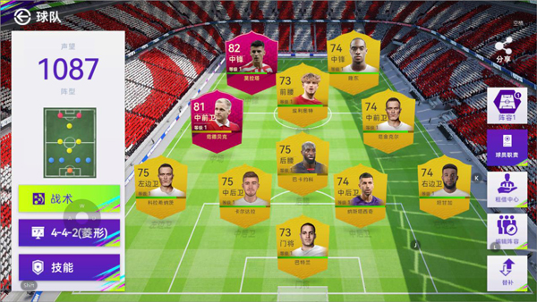 424阵型首先的中场位置一定要选择强力的防守覆盖面积较大,拦截能力强的中场,因为424阵型的中场是薄弱点,一旦进攻打不开局面且中场失守就会使球队陷入困境。中场防守覆盖面积大的话可以兼顾边路的一部分防守,让能让边锋放心舒适的推进,一旦双边锋成功杀入敌方边路,无论是传中还是内切都能给对手造成巨大威胁,因为双前锋的前插,边路的协防会非常少,因此边锋突入边路后,基本上就是边锋与边卫的一对一,玩家倘若操作能力较强的话非常容易得分。