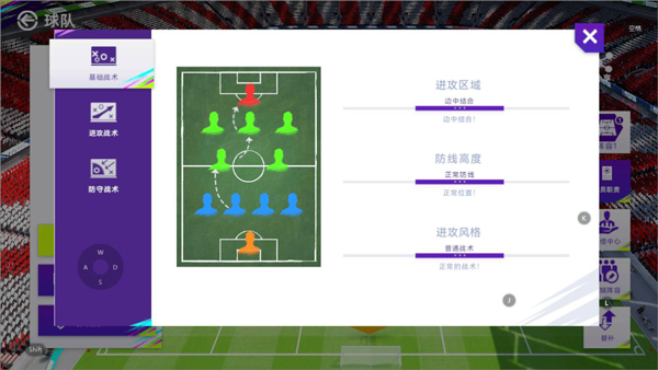 进攻方面,多一些球员的边路传中,让前锋能有更多争顶机会,即使无法争顶成功,也能让球被防守球员解围出弧顶,让前插的中前卫有射门机会,而射门方面也是建议谨慎,提高得分的稳定性,不浪费得分机会。