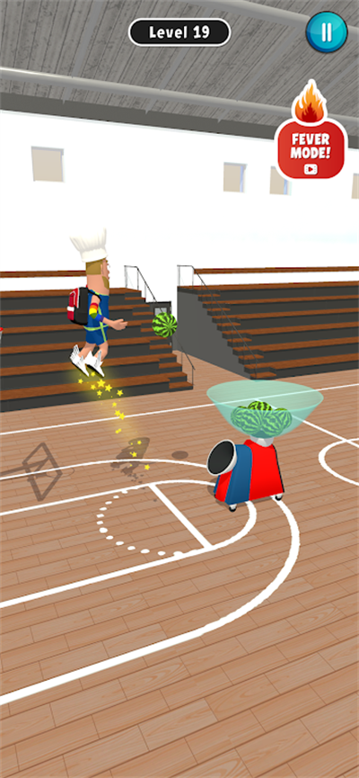 2、拖动角色起飞,瞄准篮筐,将篮球扔进篮筐,获得相应分数。