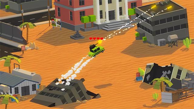 2、进入关卡后,玩家需要操作方向盘驾驶战车攻击敌人。战斗中可以使用枪械和火球进行输出,同时需灵活躲避敌方攻击,避免战车损毁或角色受伤。