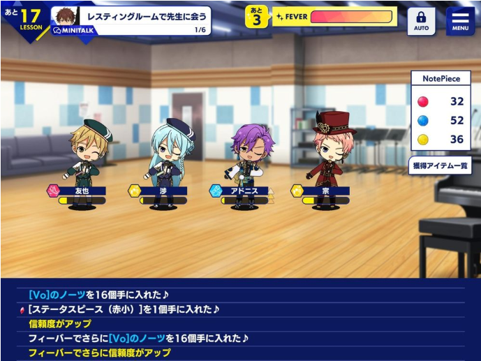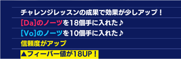 下次有小偶像来的时候[Da]跟[Vo]的量就从9/5变成18/10,Fever值增加量也会翻倍
