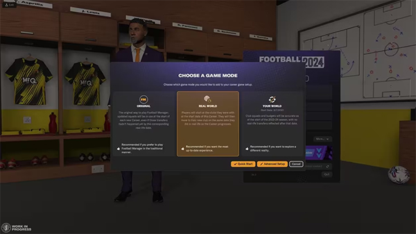 这些新模式让《FM24》的体验更加丰富。选择经典模式则意味着您可以用熟悉的方式开档。您也可以选择现实世界模式,这意味着球员会在赛季初的几场比赛结束后再加入,帮助他们提高体能和战术熟悉度可能会成为您的挑战。又或是选择您的世界模式,您将在“平行世界”掌握财政大权,拥有改变足坛历史的能力。