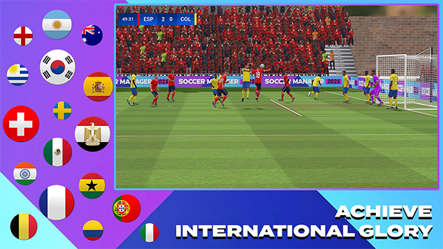 使用我们全新的国际管理系统在全球舞台上统治您的对手。在俱乐部舞台上证明您的管理技能后,您将开始收到国际球队的录取通知书。起初,较小的国家会要求您提供服务,但随着您的地位提高,阿根廷、英国和德国等全球巨头会来敲门。我们的国际管理系统让您可以完全控制您的团队。从你引领走向荣耀的国家中召集神童和知名超级巨星。召集你的团队,制定你的战术,带领你的国家在各种洲际和世界范围内的比赛中取得辉煌。在SoccerManager2025中成为全球冠军。