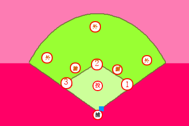 有捕手的垒就是本垒,打击时打击手也在这个位置。左面右面有两个打位,看你的打击手是左打右打。