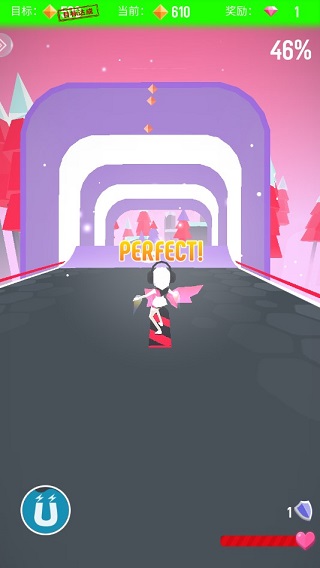 游戏操作十分简单,但是关卡机关变化较多,所以也十分考验玩家的操作。以屏幕中轴为界限,点击左右两部分分别控制小姐姐向左或向右移动。游戏关卡机关不仅仅设置了跳跃、边界滑动等动作难度,更运用了类似《极速变色龙》中的颜色变化,不过本作当角色撞击当前颜色后还可以补充血量。当然每一次的操作失误小姐姐都会损失血量,当血量为空时,则游戏结束。