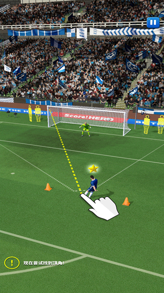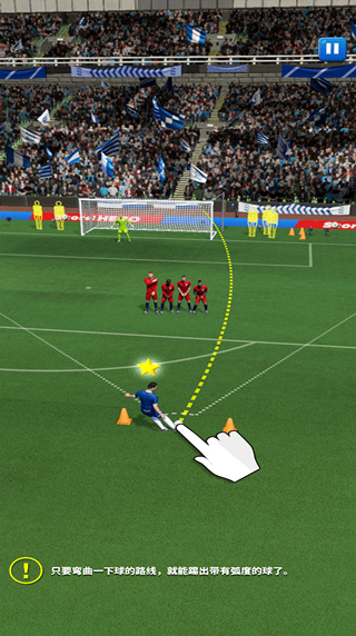 3、只要弯曲一下球的路线,就能踢出带有弧度的球了;