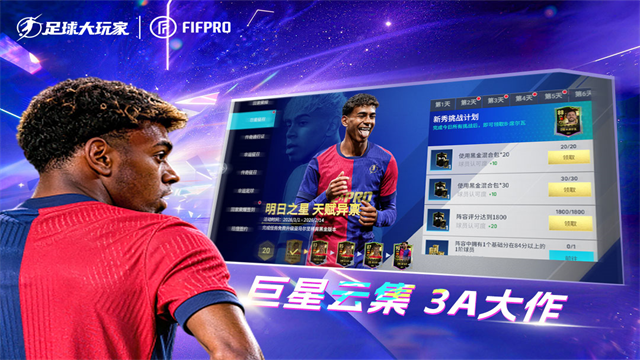 足球大玩家是一款由FIFPro正版授权的足球手游,采用60帧高帧率,让您在游戏中感受到最真实的足球世界。在游戏中,玩家需要组建一支十一人的足球队,包含FIFPro授权提供的数千名真实球员,如梅西、C罗和内马尔等。同时,足球大玩家游戏中的玩法十分丰富,排位赛、城市赛等应有尽有,圆你小时候的足球梦。