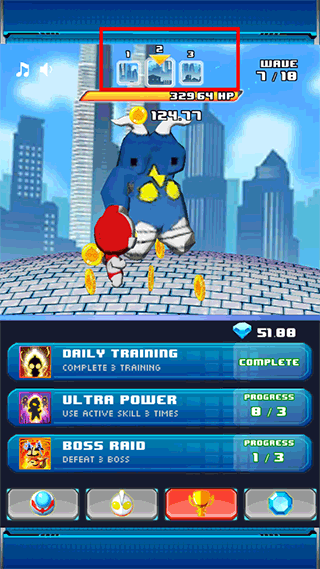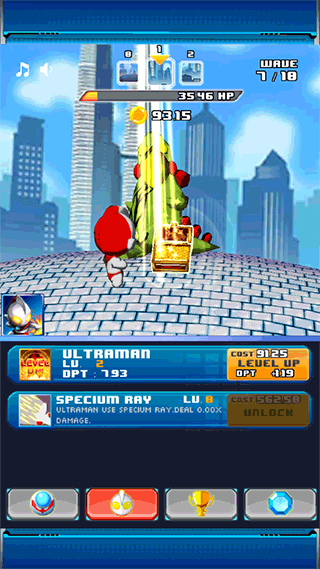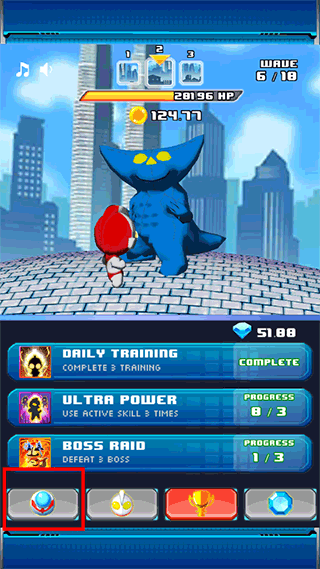 3、左下角的圆形图标就是奥特曼的技能选项,点击一下奥特曼就会进化。